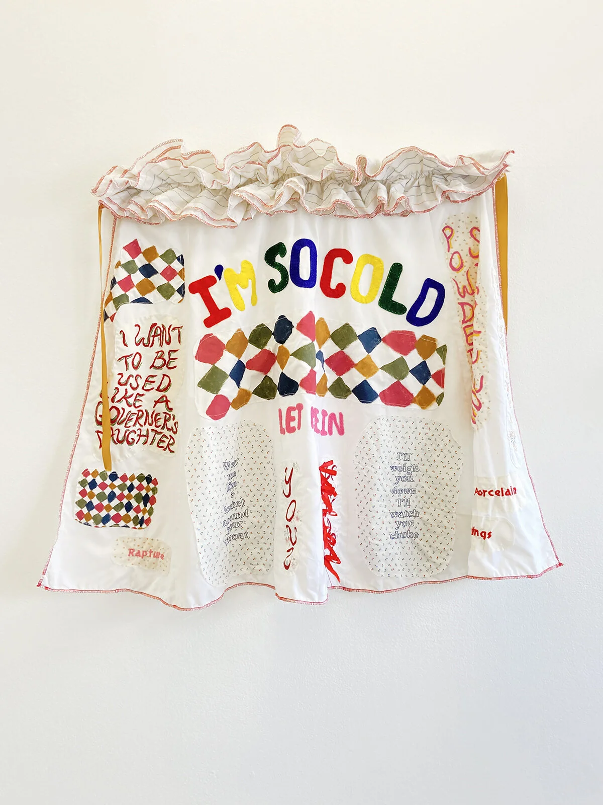 Categories: All Garments Accessories Words Vintage All | Garments | Accessories | Words | Vintage | Cathy's Cape $150.00 Hypochondriac Awareness $75.00 Ribbons Set $60.00 Fringed Mask $20.00 “The Dinner Party” $20.00 "Les Goûters" $12.00
